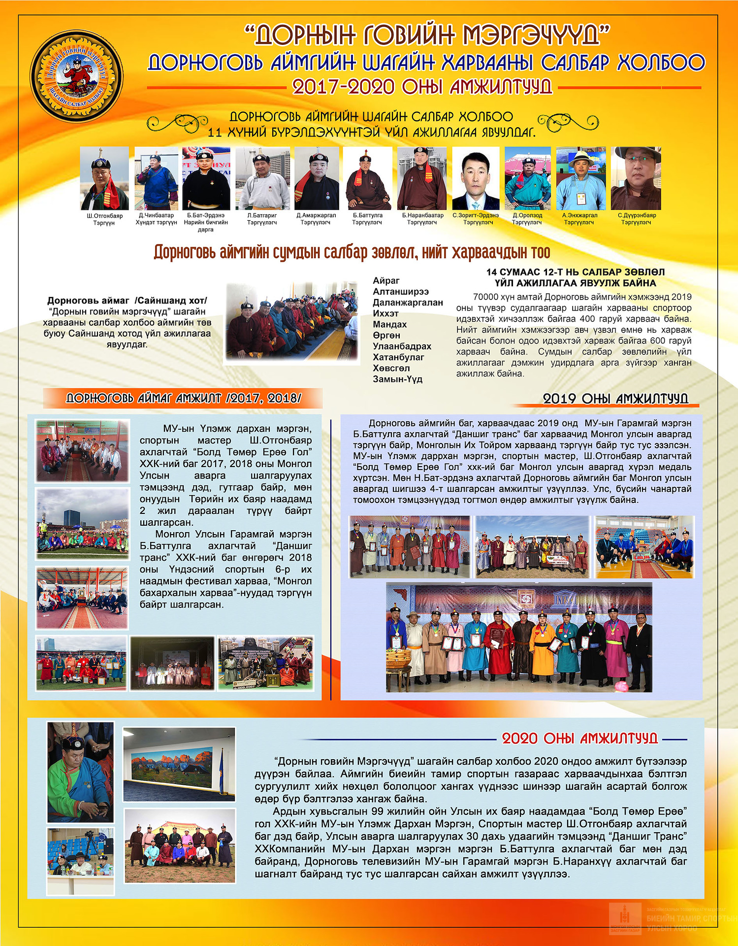 "Дорнын говийн мэргэчүүд" Дорноговь аймгийн Шагайн харвааны салбар холбооны 2017-2020 оны амжилтууд